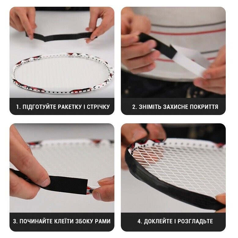 - Лента легко клеется к ободу независимо от формы ракетки;