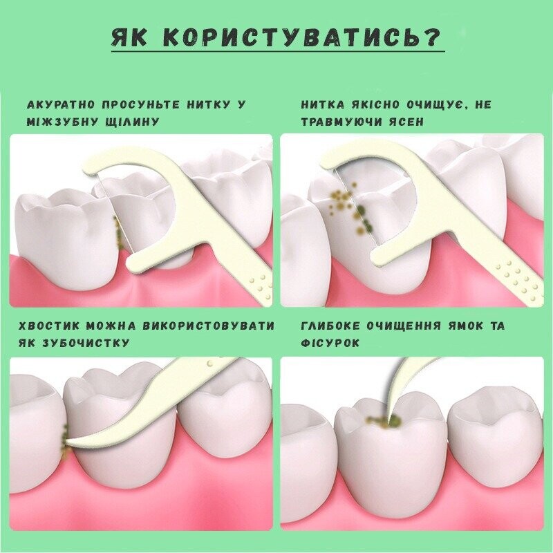 Зубные Флостики - 2 в 1 Зубная нить и Биорозкладная Зубочистка 50 шт