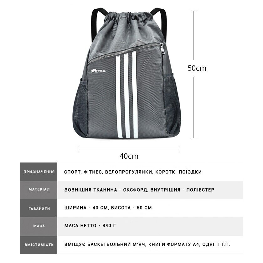 Сумка Мішок Спортивна ANRI.E. 40*50 см (Сірий)
