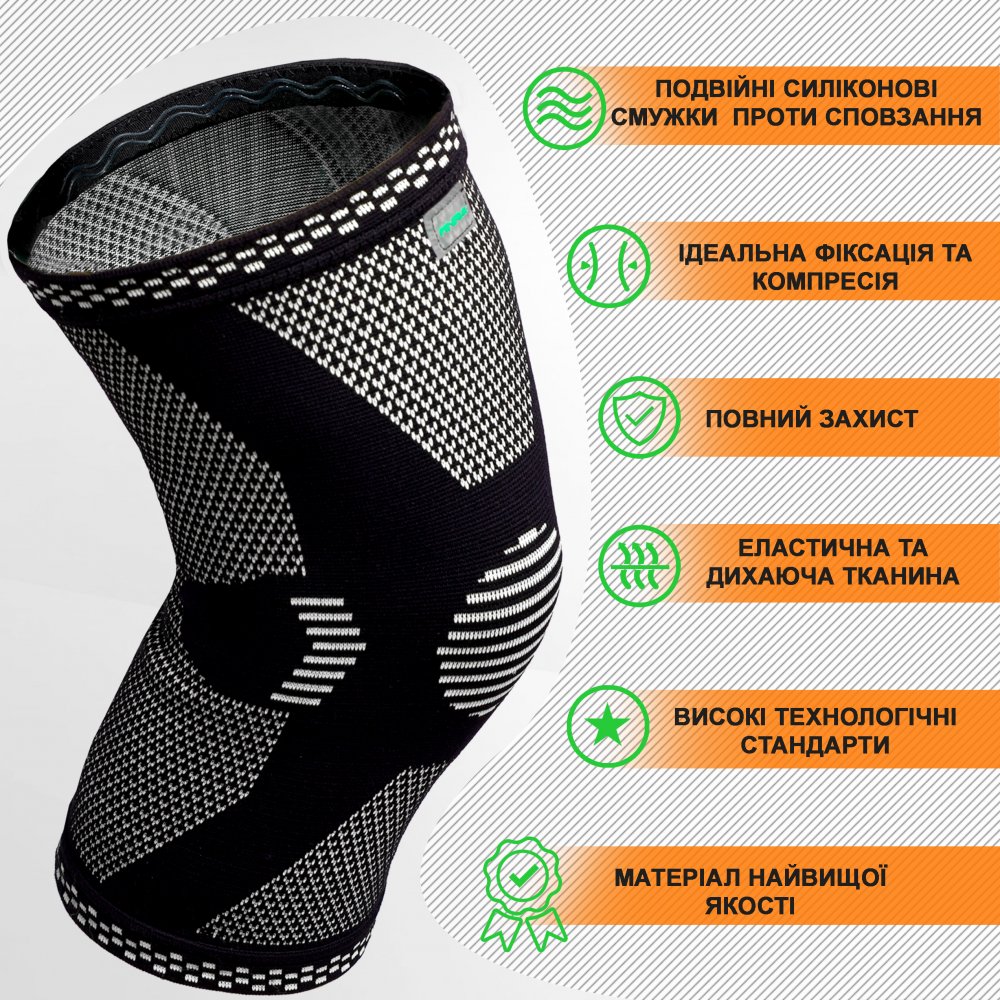 - подвійні антислизькі силіконові смужки з внутрішньої сторони запобігають сповзання наколінника під час рухів;