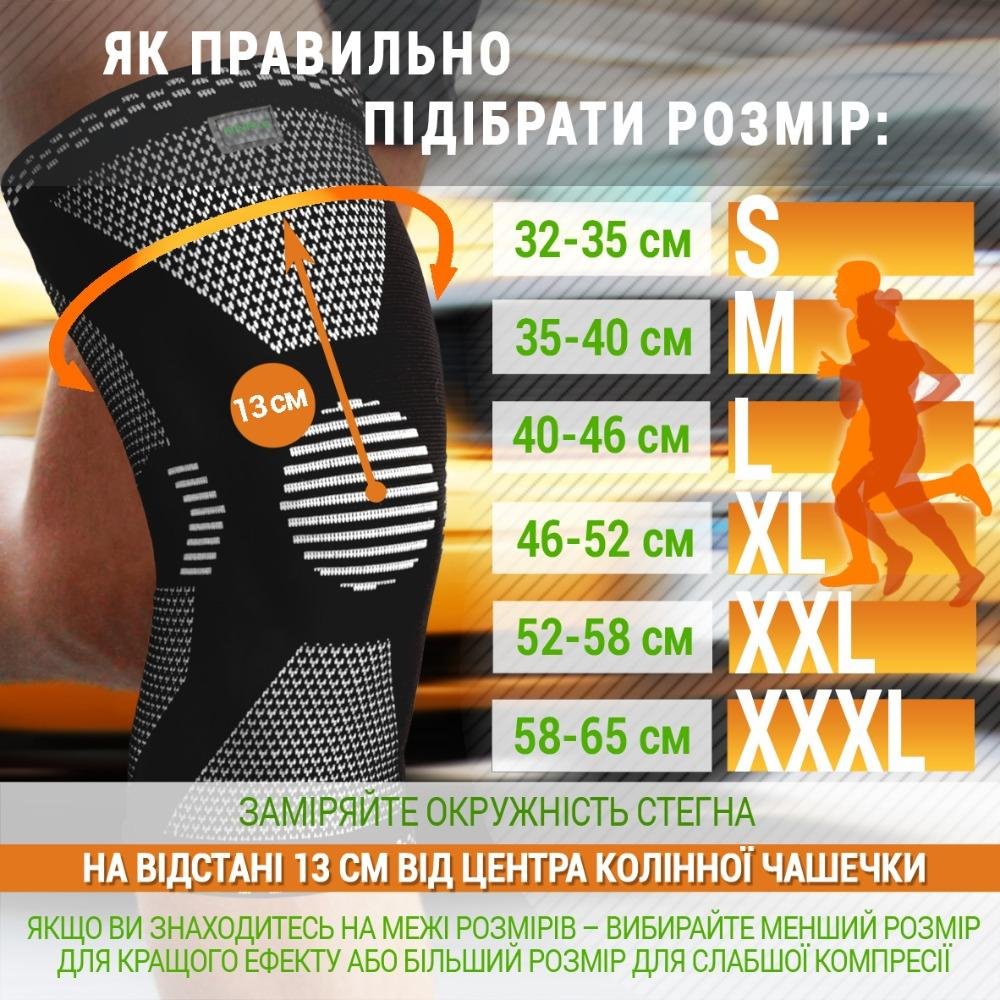 Якщо ваш замір на границі розмірів (наприклад, 36 см, 40 см, 46 см, 52 см, 58 см), тоді краще взяти менший розмір для кращого ефекту або вибирайте більший розмір для слабшої компресії.
