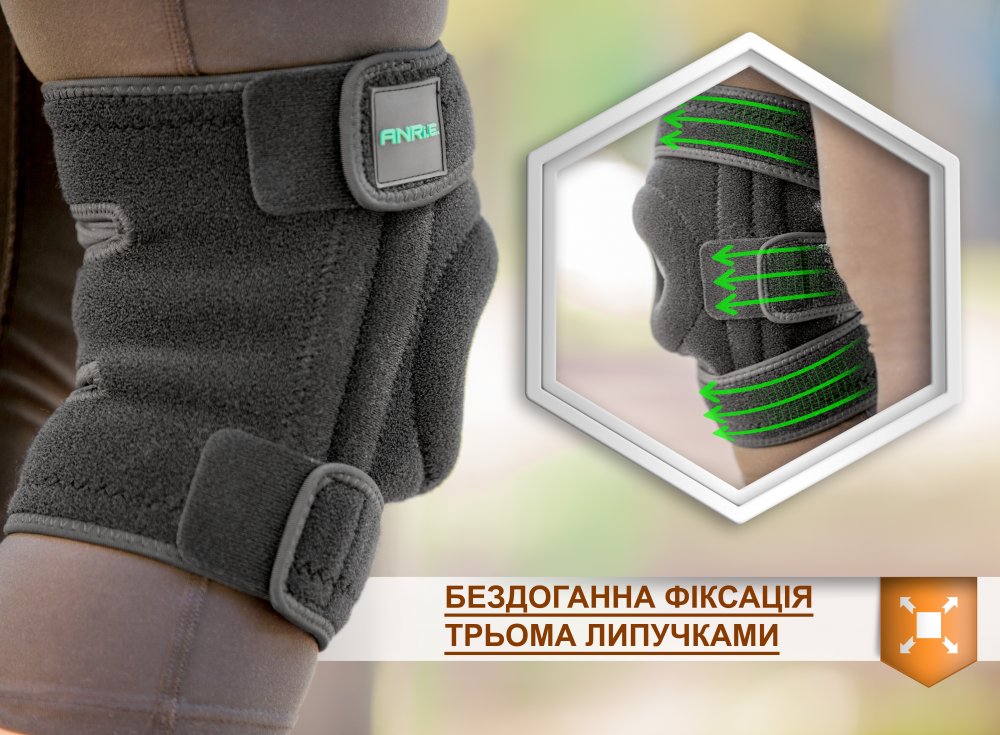 Колінний бандаж ANRI.E. KS-101 характеризується регульованою, більш жорсткою фіксацією в порівнянні зі звичайним типом наколінників. Завдяки 3-м ремінцям з липучками можна добре зафіксувати колінний суглоб або чашечку. Цей тип наколінника використовується як під час фізичних вправ, так і у повсякденному житті.